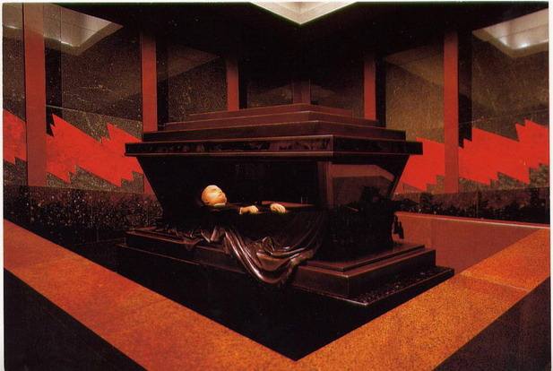 1925年,列寧墓被改建,顯得更加雄偉,但仍為木結(jié)構(gòu);1929~1930年,又用磨光了的紅色花崗石和黑色大理石重建;衛(wèi)國戰(zhàn)爭以后,水晶棺也被換成新的,陵墓內(nèi)部重新加以修葺;1974年在改建紅場的同時又對陵墓進行了修整;1976年又作了預(yù)防性檢修。