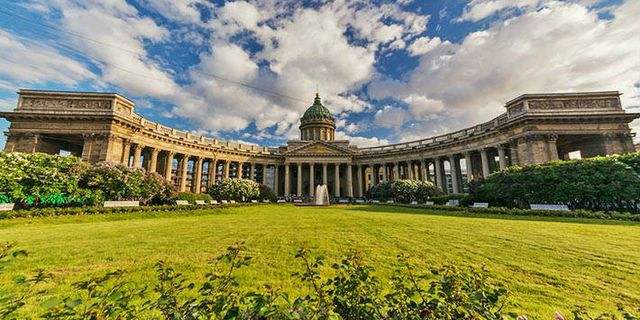 喀山大教堂(俄語:Казанский собор),位于圣彼得堡的涅瓦大街,由俄羅斯建筑師沃羅尼欣設計,于1801年8月開始奠基儀式,教堂以羅馬圣彼得大教堂為原本,歷經10年于1811年竣工。