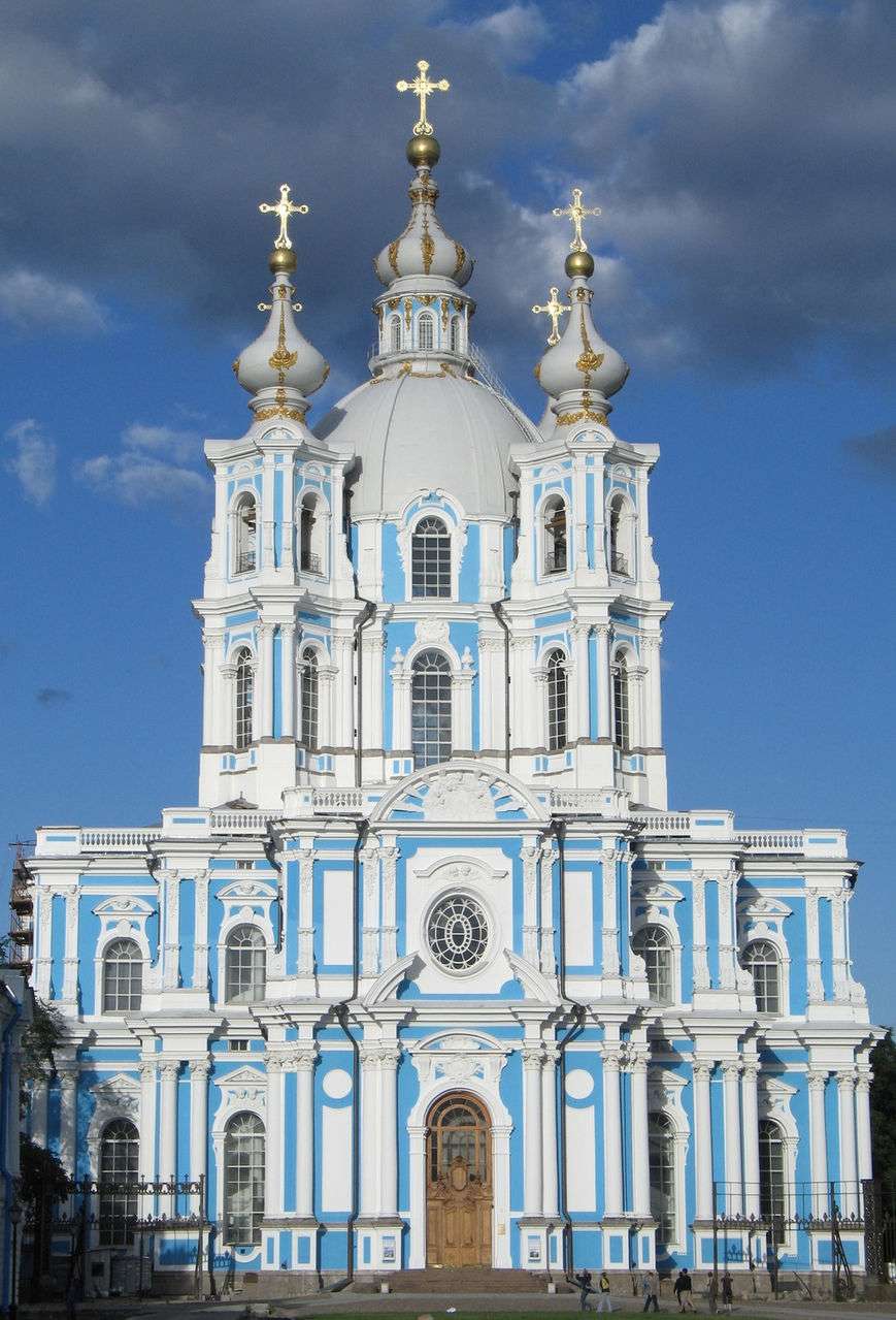 斯莫爾尼宮(Smolny),位于圣彼得堡市的東北部,在涅瓦河轉(zhuǎn)彎的地方,是一座外觀典雅的三層建筑,它建于1806—1808年,原為貴族女子學(xué)院。