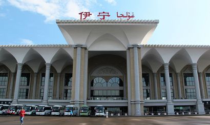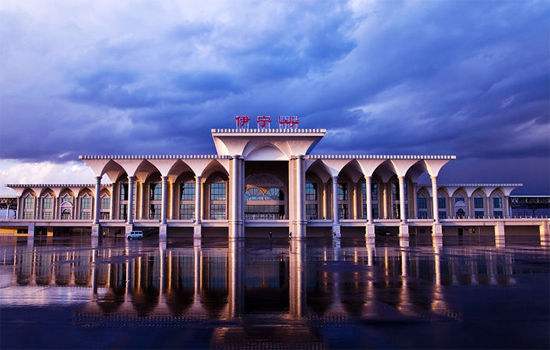 火車位于伊寧市西北,距市中心6千米。占地面積280公頃,其中站房建筑面積1.2萬平方米,站前廣場2萬平方米。由貨場、站房、綜合維修中心、機務(wù)段、客車技術(shù)整備所、站修所等部分組成;預(yù)留集裝箱貨場、站場,設(shè)8條股道,4條貨場裝車線。旅客吞吐量1500人/天,屬中型鐵路旅客車站。