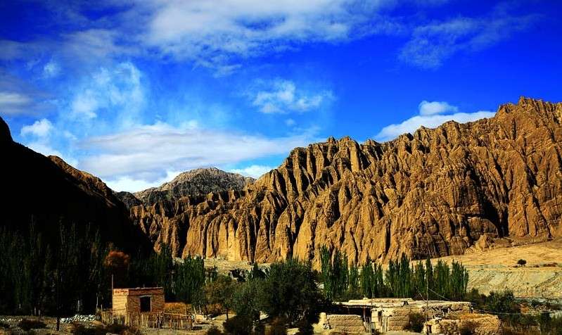 從地理位置上來說,蓋孜大峽谷是通往帕米爾高原的門戶,距離喀什市往西大約有127公里,海拔2500米,是前往帕米爾高原的第一站。帕米爾高原古稱不周山、蔥嶺,古絲綢之路就從此經(jīng)過,古人曾在峭壁上修棧道,如今在高懸的絕壁上,仍然還依稀可以看見有打孔木樁的遺跡。版權所有山東聊城聊之旅國際旅行社有限公司,轉載必究!由于大峽谷內植被稀少,因此當?shù)厮四撩褚埠苌僭诖顺鰶],漫山遍野有一種荒蕪的景象。