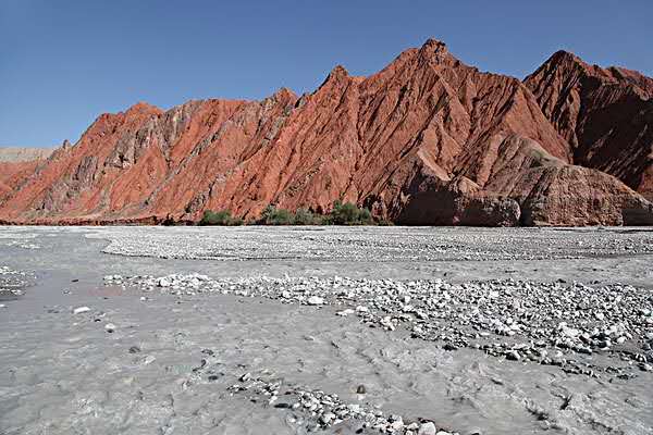 蓋孜大峽谷位于314國道的咽喉部位,蓋孜大峽谷裸露隆起巨大山體,層層疊疊,褶皺縱橫。山尖如削、赤紅如焰的蓋孜峽谷從山崖的橫斷面,可以清晰的看出不同巖質,這應該是地殼被不斷推高,形成的不同斷層吧。大自然用無窮無盡的力量,改造著地球,也造就了不同的形形色色的風景。版權所有山東聊城聊之旅國際旅行社有限公司,轉載必究!在巍巍的山脈深谷中,這條奔涌不息的蓋孜河,河水終年不斷,長流不息地沖刷著河谷。峽口山體時有發(fā)生塌方,塌下的石塊都滑到了谷底。亂石遍地,山野寂寥,仿佛回到了洪荒時代。