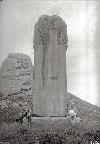 述圣紀碑位于司馬道西側(cè),與無字碑相對,是武則天親撰、其子唐中宗李顯書丹,是為唐高宗歌功頌德的一通功德碑,北距西闕8.65米。述圣紀碑記述高宗文治武功,開帝王陵前立功德碑之先例。在乾陵之前,帝王的陵墓不樹碑,墓內(nèi)也不放墓志銘,乾陵突破了這一慣例,因此述圣紀碑具有特殊的歷史價值。