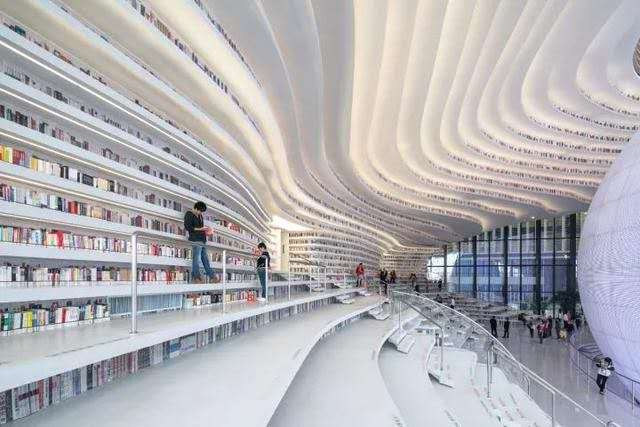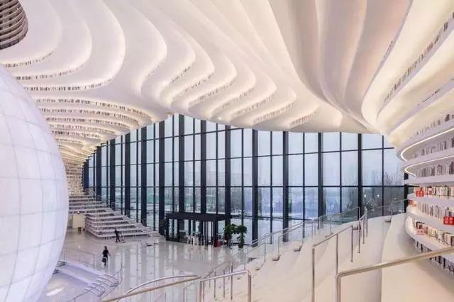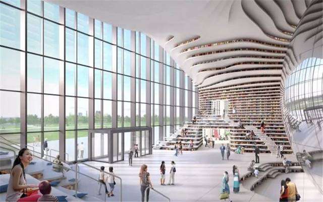 天津圖書館文化中心館分為地上五層,地下一層,在功能上實現(xiàn)了老年和青少年閱覽共享,建筑內(nèi)部結(jié)合閱覽功能設(shè)置了七個采光中庭,首層設(shè)置了南北貫穿的通廊式共享空間,以兩個開放的大型入口與北側(cè)湖畔廣場、南側(cè)城市空間相互連通,人們可以自由進入圖書館。文化中心館涵蓋省級圖書館的全部功能,包括書、刊、報的外借閱覽,視聽資料欣賞,數(shù)字資源加工利用,以及工具書、歷史文獻資料查閱,珍本圖書展示,還有古籍文獻保管、整理、修復(fù),還包括視障讀者、少兒讀者的服務(wù)和政府信息的查閱等;增加音樂圖書館服務(wù),開辟音樂培訓(xùn)教學(xué)區(qū)、音樂普及體驗欣賞區(qū)、專業(yè)欣賞和深度體驗區(qū)、音樂資料收藏等區(qū)四個區(qū)域。