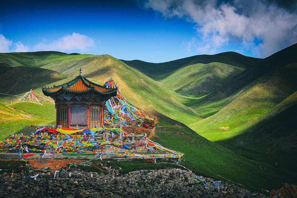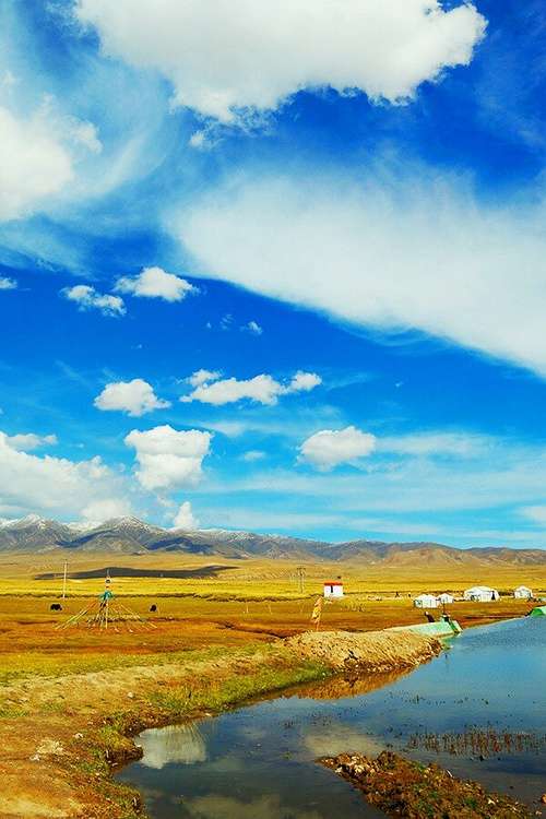 山下的倒淌河,這條華夏大地惟一一條我行我素倔強(qiáng)地從東流到西的倒淌河,凝聚了公主太多復(fù)雜的淚水,幽靜而溫柔地倒淌著,是倒淌那段千年不斷的感情?是倒淌那千年流不斷的眷念?文成公主途經(jīng)赤嶺作短期停留的歷史事實,給漢藏人民留下了美好的記憶,青海民間至今流傳著這樣的故事:當(dāng)文成公主行至赤嶺,將要離別唐朝管轄的土地,心中一片愴楚。向前西望吐蕃,天高云低,草原蒼茫;回頭東望長安,更加留戀故土。遂拿出皇后賜予的“日月寶鏡”,從中照看長安景色和親人,不禁傷心落淚,思鄉(xiāng)的淚水匯集成了倒淌河,由東向西,流入青海湖。但當(dāng)她想到身負(fù)唐蕃聯(lián)姻通好的重任時,便果斷地摔碎了“日月寶鏡”,斬斷了對故鄉(xiāng)親人的眷戀情絲,下定了毅然前行的決心,義無反顧地走上了西行的道路。繼這次和親的70年后,唐又以宗室女金城公主嫁給吐蕃贊普棄隸縮贊,金城公主沿著文成公主走過的路,又一次經(jīng)過了日月山。金城公主入蕃和親,對于促進(jìn)唐蕃經(jīng)濟(jì)文化交流,同樣具有重要的意義。今天,日亭、月亭在當(dāng)年公主駐足的地方高高聳立,站在亭前西望,當(dāng)年崎嶇艱難的路程如今已變成了連接漢藏人民的康莊大道。