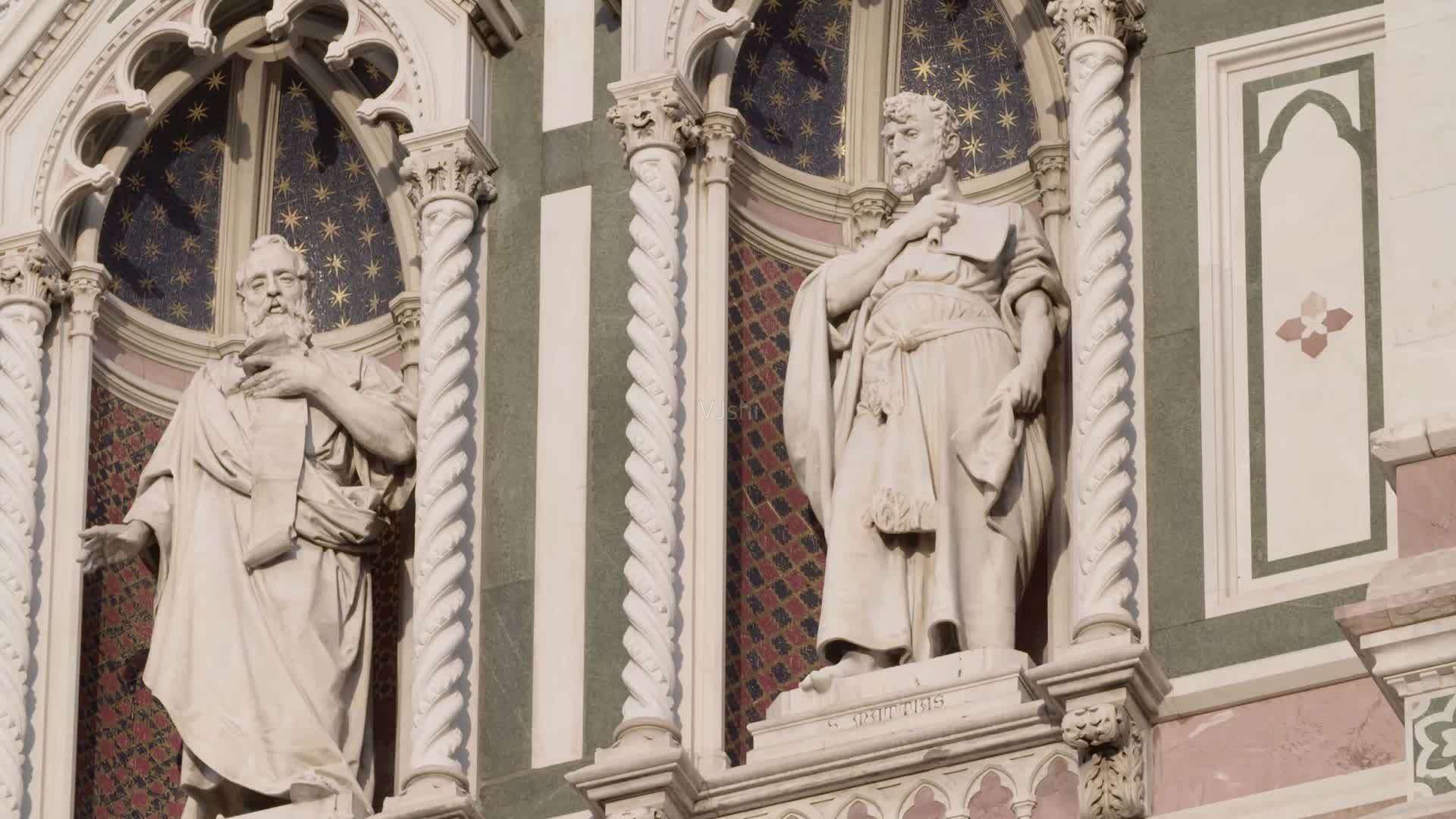 高85米,最初是1334年由大畫家喬托設(shè)計并監(jiān)工的,故稱其為“喬托鐘塔”。屬哥特式建筑,由六層方型結(jié)構(gòu)向上堆疊成柱形,外墻鋪白色大理石,純凈優(yōu)雅。