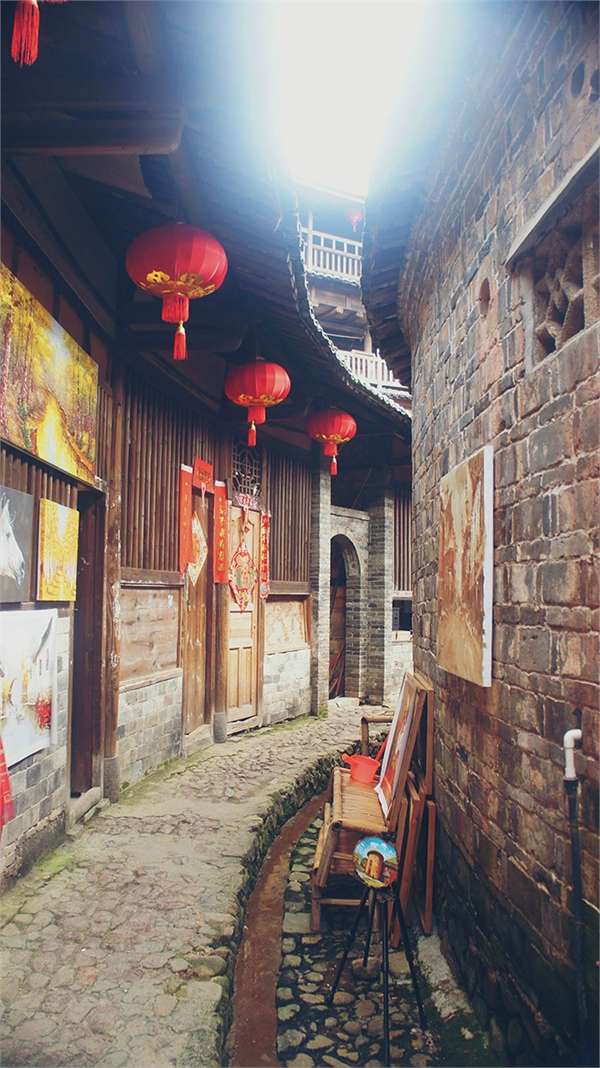 第四環(huán)為祖堂,單層,比第三層稍低,使全樓形成外高內(nèi)低、逐環(huán)遞減、錯(cuò)落有致的格局。占地33.83平方米。后向的廳堂與正面兩側(cè)的孤形回廊圍合成單層圓形屋,中為天井。祖堂歇山頂,雕粱畫棟,正面對(duì)著大樓門,門面兩側(cè)飾繪畫和精美的磚雕;廳堂東西兩側(cè)各設(shè)一小門與全樓東西走向的通道及外環(huán)東西面的兩個(gè)邊門相連。版權(quán)所有山東聊城聊之旅國際旅行社有限公司,轉(zhuǎn)載必究!廳堂后向上方和前向屋檐下懸掛清代至20世紀(jì)80年代一些名人贈(zèng)送給該樓的題匾;兩側(cè)兩對(duì)石柱上鐫刻警示子孫后代的楹聯(lián):“一本所生,親疏無多,何必太分你我?共樓居住,出入相見,最宜重法人倫?!薄疤斓厝巳P,奧妙無窮;助人間為樂,造福萬年。”由此可以見證樓主世代立家、做人的理念和曾經(jīng)有過的輝煌。每逢重大節(jié)日,祖堂擺設(shè)的巨型圍屏,即16世祖江馨軒71壽辰時(shí)的祝壽屏風(fēng),由12塊組成,高2.72米,中間8塊每塊寬0.46米,兩邊每塊寬0.47米,精雕細(xì)刻,金碧輝煌,古事人物栩栩如生,其中最引人注目的是千古流傳的“二十四孝圖”。屏中正面下半部分的“二十四孝圖”取材于古代孝子的故事,工筆細(xì)膩、形象逼真、圖文并茂、寓意深刻,充分體現(xiàn)了土樓客家人敬祖睦宗、孝順父母的傳統(tǒng)美德。圍屏正面上半部分雕刻唐代著名人物郭子儀拜壽圖,背面雕刻清代朝廷六部-及樓主親戚的祝壽詞,內(nèi)容包括頌詞與對(duì)后人的警語。此外,該圍屏還雕刻許多珍禽花鳥。對(duì)樓主來說,該圍屏在重大節(jié)慶時(shí)反復(fù)向族人展示,既是讓大家分享藝術(shù)珍品,更是對(duì)全體族人進(jìn)行傳統(tǒng)美德的再教育。該樓環(huán)與環(huán)之間以鵝卵石砌天井相隔,以石砌廊道或小道相連。