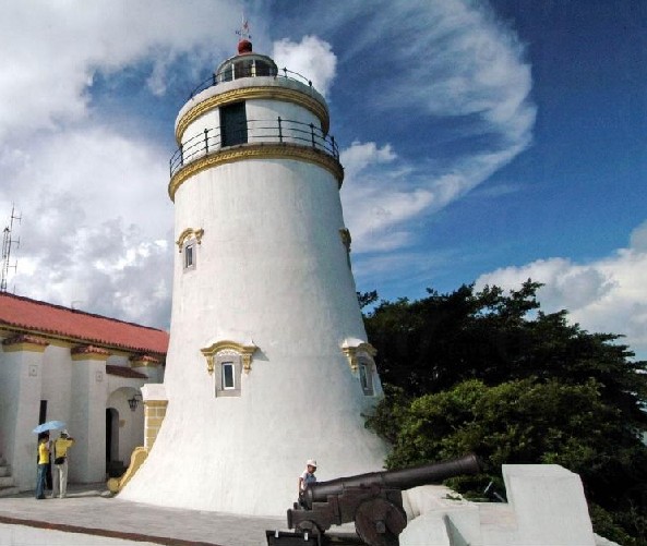 炮臺(tái)上的圣母雪地殿圣堂建于1626 年。在最近的修葺中,在教堂內(nèi)發(fā)現(xiàn)了華南地區(qū)罕見(jiàn)的壁畫(huà)。這些壁畫(huà)糅合了中西文化的特色,具有極高的藝術(shù)價(jià)值。 屹立在教堂側(cè)的東望洋燈塔,是中國(guó)沿海地區(qū)最古老的燈塔,建于1865 年。燈塔高13 公尺,白墻紅頂,雄偉挺拔。在晴朗的夜晚,澳門(mén)四周 20 里的范圍內(nèi)可以見(jiàn)到燈塔射出的燈光。