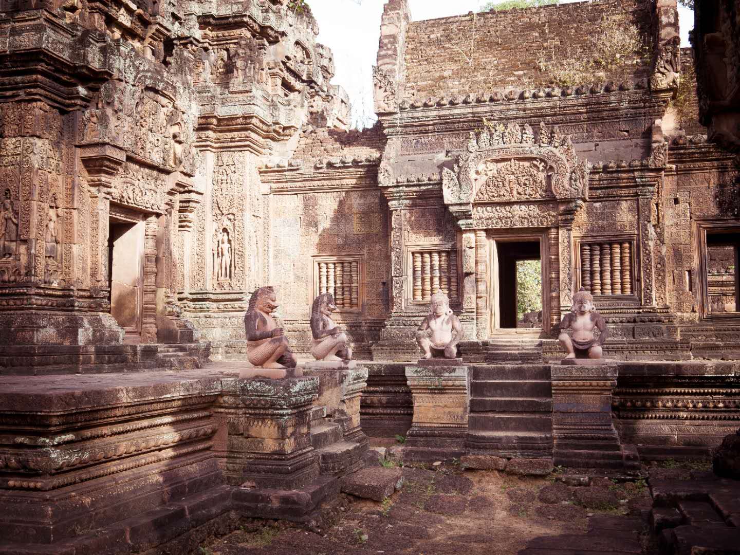 在歷時(shí)300余年的吳哥大規(guī)模建設(shè)時(shí)期,可以看出許多建筑藝術(shù)風(fēng)格方面的變化,所反映的宗教內(nèi)容則從印度教崇奉的濕婆、毗濕奴諸神到大乘佛教崇奉的觀世音菩薩。