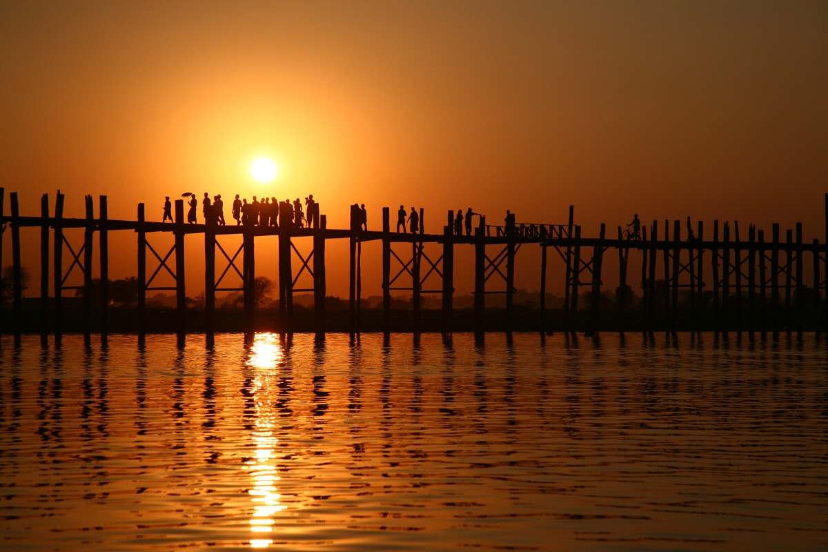 烏本橋(U Bein Bridge),在緬甸的Amarapura(阿馬拉布拉)古城境內,橫跨東塔曼湖(Taungthaman),長達1200米,是世界上最長的柚木橋。