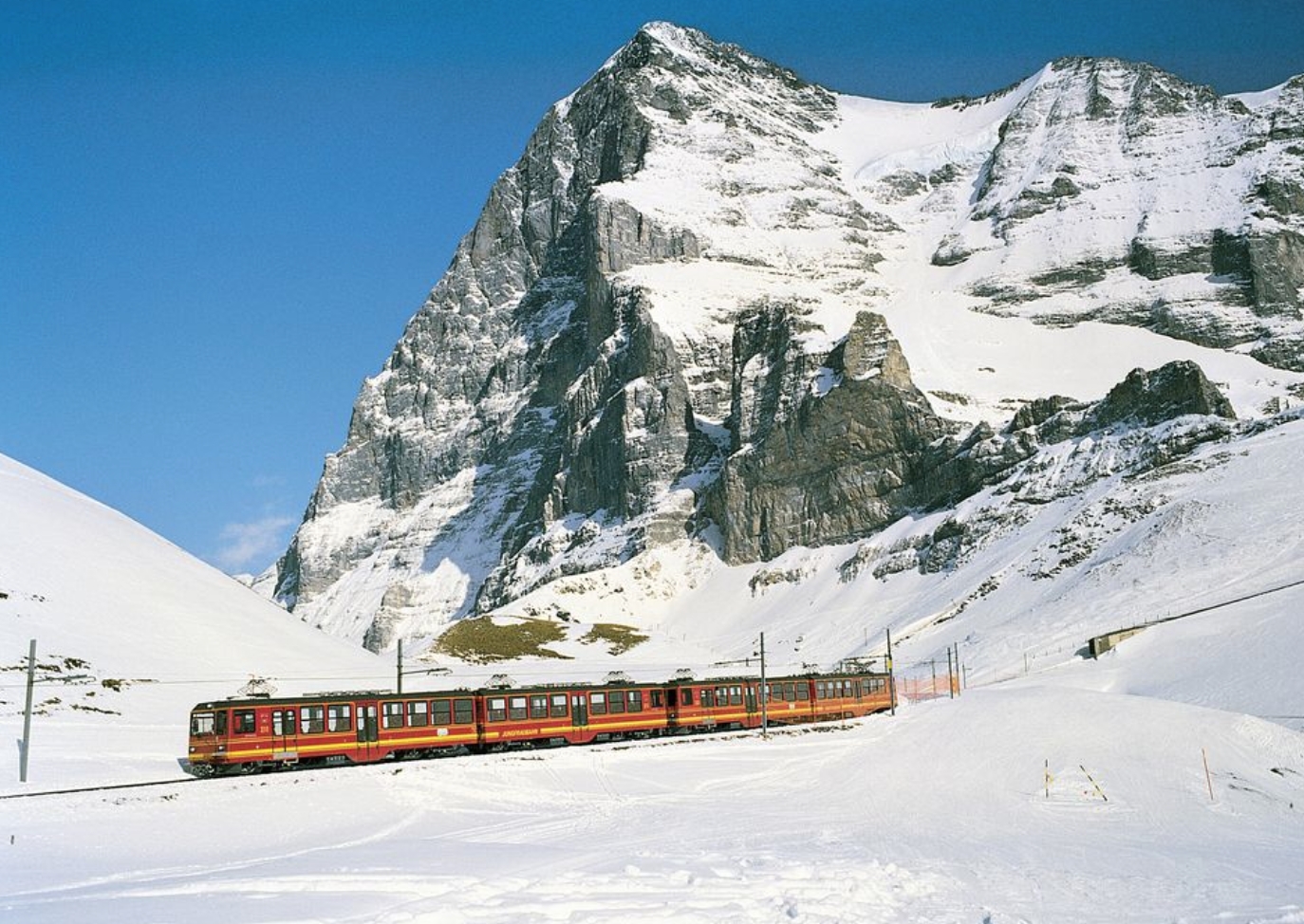 少女峰于1811年才首次由Meyer 兄弟征服。20世紀(jì)初少女峰鐵路(Jungfraubahn)建成,用隧道及齒軌鐵路連接少女峰旁,3,454米(11,333呎)高的小少女峰(Jungfraujoch)。位于小少女峰山內(nèi)的車站亦為歐洲最高的火車站,有“歐洲之巔”之稱。少女峰鐵路由山下Grindelwald 開始,婉延經(jīng)過Eiger 的草地,于Kleine Scheidegg 進(jìn)入隧道。于堅(jiān)固的花崗巖內(nèi)的隧道雖然只長7 公里,坡度卻達(dá)到25%,于1898-1912年花了14年才完成,它有四分之三左右的路段是在冰河底下隧道巖壁里通過,工程十分艱巨。由Kleine Scheidegg 到少女峰車站,上山需時約50分鐘,下山則需要35分鐘。