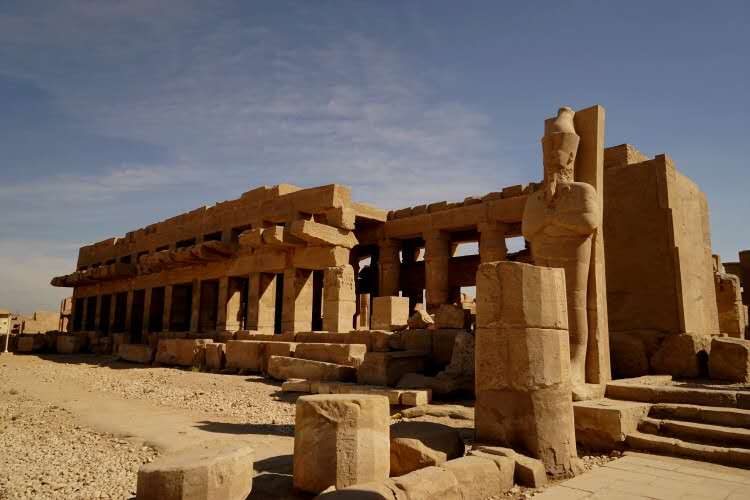 遺址占據(jù)當(dāng)時底比斯東城的北半部。通過斯芬克斯(見獅身人面像)大道與南面1千米的盧克索相接,那里另有一座阿蒙神廟。由于中王國和新王國各朝都是從底比斯起家而統(tǒng)治全國的,底比斯的地方神阿蒙神被當(dāng)做王權(quán)的保護神,成為埃及眾神中最重要的一位。這里的阿蒙神廟也成為全國最大最富有的神廟。