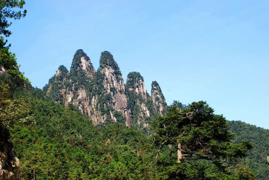 中文名五指峰地點井岡山得名原因因山峰并列如五指海拔1586米地理位置位于井岡山市茨坪西南面六公里處氣候條件亞熱帶季風(fēng)氣候別稱杜鵑山。