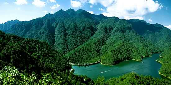 井岡湖(群巒湖)是一座攔江筑起的人工湖,塊石漿砌的雙曲拱壩,高92米,稱之為中國吉尼斯紀(jì)錄。湖面62萬平方米,蓄水1870萬立方。從南湖上船,經(jīng)中湖,泛舟穿林,可駛向西湖和北湖,全長5.3公里。整個湖周圍,林木密密層層,盤根虬枝,濃蔭如蓋。湖北的峽谷,長2500米。形成一根巨大的扁擔(dān),稱之為“扁擔(dān)崖”。崖頂端奇峰怪石,有幾株臺灣松點綴著,青云繞繞,婀娜多姿,活像一幅與天相銜的中國國畫。從主峰大壩碼頭上游輪,可游覽井岡湖,至水口石門碼頭上岸,又可游覽水口各景點。