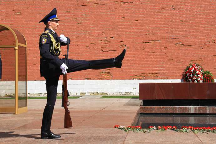 俄羅斯聯(lián)邦警衛(wèi)總局公共聯(lián)絡(luò)和新聞中心負(fù)責(zé)人謝爾蓋瀠維亞托夫透露,每天從早晨8點(diǎn)至晚上8點(diǎn)莫斯科克里姆林宮衛(wèi)戍部隊(duì)總統(tǒng)團(tuán)的軍人們?cè)陂L(zhǎng)明火旁站崗值班。每隔一個(gè)小時(shí)換一次崗。