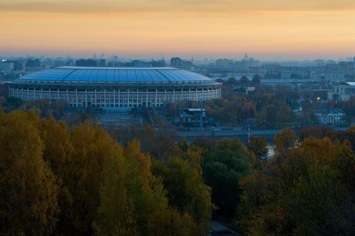 麻雀山的山腳下,莫斯科河對(duì)面,正對(duì)著觀景臺(tái)的是中央體育場(chǎng),它建于四五十年代。1980年,為迎接在莫斯科舉辦的第22屆奧運(yùn)會(huì),還對(duì)它進(jìn)行了擴(kuò)建并把它作為奧運(yùn)會(huì)的主會(huì)場(chǎng)。這樣一來(lái),就使它成為式歐洲最好的體育場(chǎng)之一。