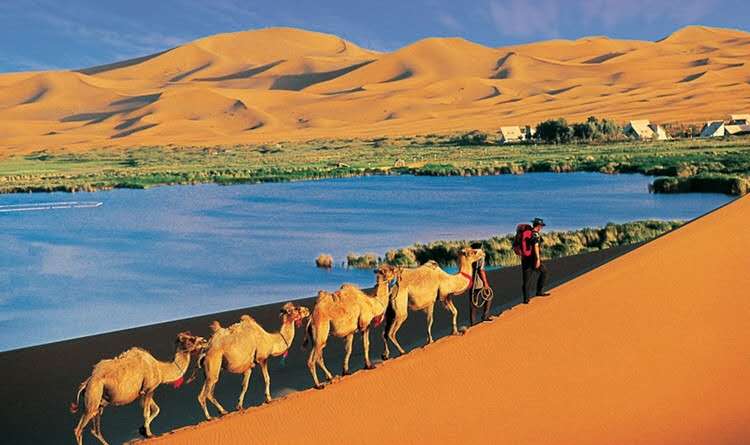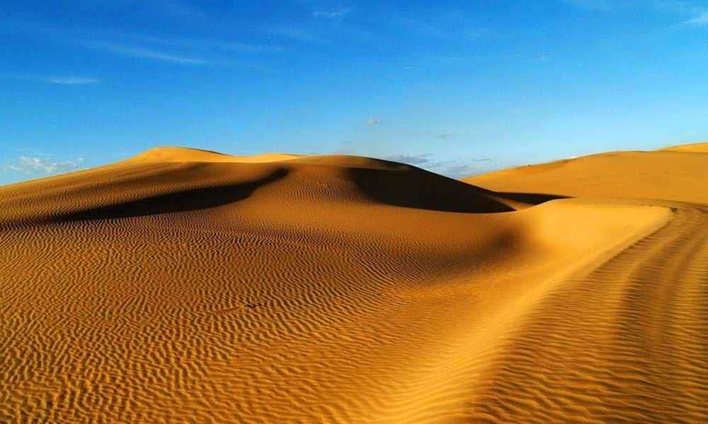 銀肯塔拉沙漠沙丘連綿分布,景色壯觀,嫩黃色的沙漠,一望無(wú)垠,景區(qū)內(nèi)有東西500米長(zhǎng)的沙灣,呈彎月?tīng)睿?/span>版權(quán)所有山東聊城聊之旅國(guó)際旅行社有限公司,轉(zhuǎn)載必究!沙丘高度110米,坡度為40度,從沙丘頂部滑下,沙子會(huì)發(fā)出轟鳴聲,形成著名的“響沙”奇觀,是罕見(jiàn)的自然景觀。