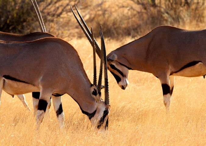 從肯尼亞雪山上流經(jīng)到地勢低的桑布魯?shù)囊镣咚髂崃_河(EwasoNyiro)是桑布魯?shù)纳?,?dāng)?shù)厝朔Q之為桑布魯之水(WaterSamburu),因為水的顏色呈棕色,又稱之為棕色的水(Brown;Water),也正是因為這條寶貴的支流,給干旱的桑布魯增色不少,在這里,隨處可見成群的大象在河邊嬉戲,鱷魚在泥水里懶洋洋的沐浴日光浴,成群的河馬匍匐在河中,當(dāng)然這些動物在肯尼亞其他地區(qū)也可以看到,但是桑布魯所特有的五大動物(BIGFIVE)是極其罕見的,葛式細紋斑馬(Brevyzebra),東非劍羚(Beisaoryx),藍腿索馬里鴕鳥(Somaliostrich),網(wǎng)狀長頸鹿(Reticulatedgiraffe),長頸羚(Gerenuk)。這里多達380余種的鳥類同樣吸引著鳥類學(xué)家的眼球,象犀鳥,非洲食魚鷹等。