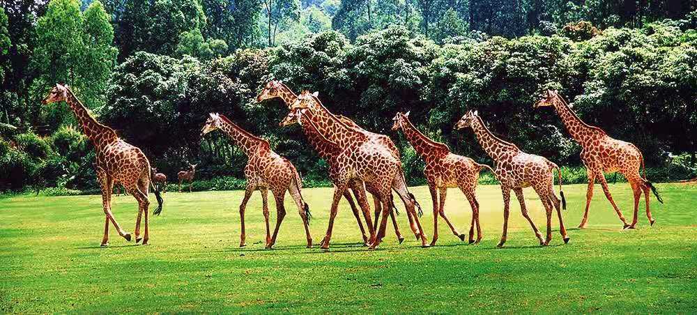 長隆野生動物世界生活著以“十大世界珍稀動物國寶”為代表的500多種珍稀動物,包括中國的大熊貓、澳大利亞的考拉、非洲黑犀牛、泰國亞洲象、馬來西亞馬來貘、塞拉利昂倭河馬等等……這些世界珍奇動物在這個動物天堂里安居并開枝散葉,使長隆野生動物世界成為世界最為重要的野生動物繁育保護(hù)基地之一?!¢L隆野生動物世界大多數(shù)動物都已形成龐大的種群,斑馬、熊貓、角馬、長頸鹿、梅花鹿、亞洲黑熊、獼猴、亞洲象、非洲獅、老虎等動物都形成了數(shù)十只乃至數(shù)百只的大種群,并仍在不斷發(fā)展壯大,為世界動物園所罕見。