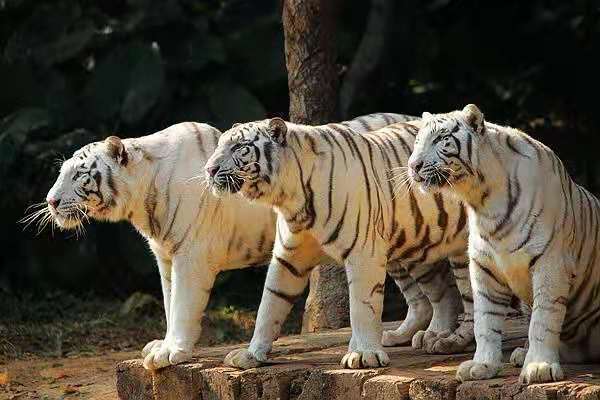 白虎是長隆野生動物世界的鎮(zhèn)園之寶,也是長隆集團(tuán)的吉祥物。目前長隆野生動物世界已經(jīng)擁有超過150多只白虎,是世界上白虎最多的園區(qū),被稱為世界白虎王國也當(dāng)之無愧。除了白虎,還有華南虎、金虎、銀虎以及孟加拉虎和東北虎等六大虎種多達(dá)300多只老虎生活在長隆野生動物世界。生態(tài)虎園在生活區(qū)域住著金虎、白虎、銀虎、孟加拉虎、華南虎以及東北虎等,每個虎種有自己的單獨(dú)生活區(qū)域,生活區(qū)內(nèi)巨石假山,流水潺潺,百分百的模擬老虎的野外生活環(huán)境。根據(jù)老虎生活習(xí)性的不同,加以細(xì)微的變化,比如華南虎和東北虎的體型和生活環(huán)境都有巨大的不同,所以在場館的設(shè)計(jì)建設(shè)上,也根據(jù)這些差異做到“虎”性化“虎”居,讓老虎們安居長隆野生動物世界。在金虎山則可以目睹世界罕見的金虎、銀虎。