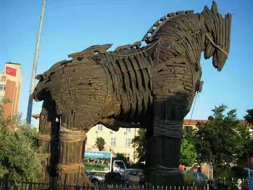 公元前9世紀(jì)古希臘詩(shī)人荷馬的史詩(shī)《伊利亞特》敘述的"特洛伊木馬計(jì)"就發(fā)生在這里。特洛伊王子帕里斯來(lái)到希臘斯巴達(dá)王麥尼勞斯宮作客,受到了麥尼勞斯的盛情款待,但是,帕里斯卻拐起了麥尼勞斯的妻子。麥尼勞斯和他的兄弟決定討伐特洛伊,由于特洛伊城池牢固,易守難攻,攻戰(zhàn)10年未能如愿。最后英雄奧德賽獻(xiàn)計(jì),讓邁錫尼士兵燒毀營(yíng)帳,登上戰(zhàn)船離開(kāi),造成撤退回國(guó)的假象,并故意在城下留下一具巨大的木馬,特洛伊人把木馬作為戰(zhàn)勝品拖進(jìn)城內(nèi),當(dāng)晚正當(dāng)特洛伊人酣歌暢飲歡慶勝利的時(shí)候,藏在木馬中的邁錫尼士兵悄悄溜出,打開(kāi)城門,放進(jìn)早已埋伏在城外的希臘軍隊(duì),結(jié)果一夜之間特洛伊化為廢墟。荷馬史詩(shī)敘述的這段事跡,成為西方國(guó)家文學(xué)藝術(shù)中傳誦不絕的名篇。