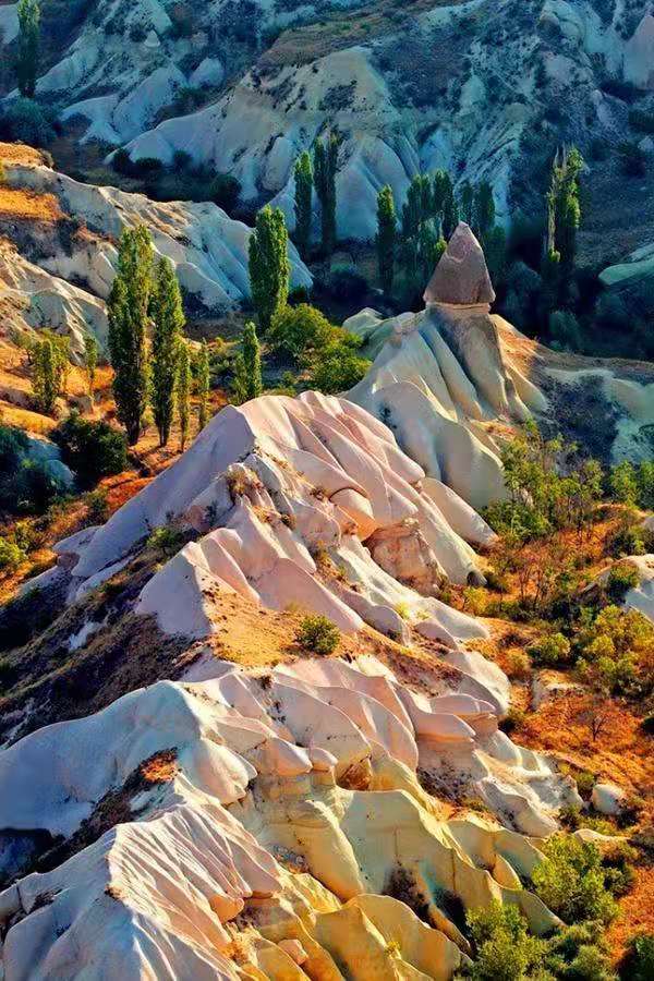 卡帕多西亞(Cappadocia,在古土耳其叫Kapadokya)以獨(dú)特的風(fēng)景聞名,奇特的巖石構(gòu)造、巖洞和半隱居人群的歷史遺跡使得這兒的“奇石林”與該國的棉堡齊名,同挾世界文化自然雙遺產(chǎn)之名,甚至還要比后者早三年入選。除了格雷梅(Greme)谷地、Ihlara峽谷等亮點(diǎn),來到這兒還可以拜訪到一些令人驚嘆的地下城市。從坐熱氣球俯瞰漫山遍野的蘑菇屋、探訪當(dāng)?shù)氐镍澴游菝窬?,到入住巖洞里的五星級酒店,此情此景在其他任何阿拉伯城市都體驗(yàn)不到。
