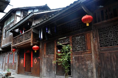 在龔灘,冉是大姓,冉家院子,已有三百年歷史。它四周封閉,進入其中,有置身徽派民居的感覺。但是與徽派民居不同,它一面是開放的,吊腳樓廊伸向街面,正房和廂房都是穿斗式結(jié)構(gòu),都是龔灘地道的建筑風(fēng)格。
