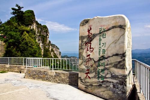 黃鶴橋峰林位于湖北建始縣花坪鎮(zhèn)南部,清江北岸,海拔1200—1300米,屬于類似張家界和柴埠溪的峰林地貌。此地奇峰林立,絕壁高聳,“欲與天公試比高”,絕壁間有一垂直狹縫,傳說是黃鶴高飛之處,后人曾經(jīng)搭橋聯(lián)“天”接“地”,故名“黃鶴橋”。