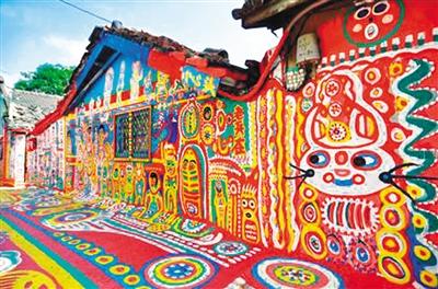 旅游傳奇景點「彩虹眷村」,起源于住在臺灣臺中市南屯區(qū)嶺東科技大學附近有一處舊眷村的八十七歲老榮民黃永阜,因為「無聊」而拿起畫筆彩將眷村內的巷弄街道當成了天然的畫布,在上頭彩繪了各式美麗的彩虹線條與可愛動物,不僅染亮了小村,在網絡上引起熱烈討論,更形成一股參訪風潮。因他的用色大膽,構圖可愛并充滿童趣,讓到訪者有如置身彩虹世界,故網友稱此處為「彩虹眷村」。