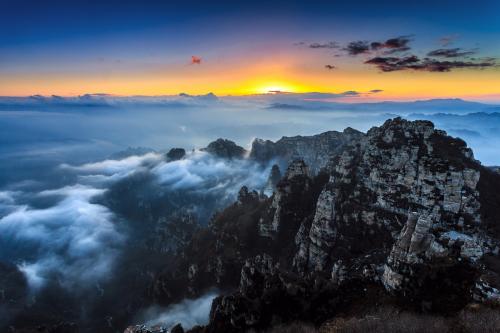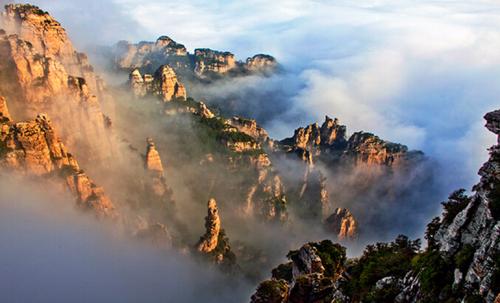 白石山位于太行山的最北端,最高峰佛光頂海拔2096米,登臨其頂可以遠眺狼牙山和五臺山。白石山景觀多樣,集峰林、怪石、絕壁、峽谷、瀑布、森林、云海、佛光、長城、廟觀等景觀于一體,地貌奇特,結(jié)構(gòu)復(fù)雜,是中國古代“三十六洞天福地”之一。