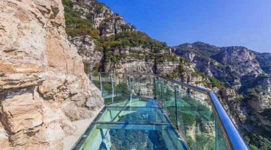 白石山玻璃棧道為混凝土框架結(jié)構(gòu),3.2厘米厚的雙層夾膠玻璃與不銹鋼龍骨架巧妙結(jié)合,每平方米承重達1000公斤,為游客游覽風光帶來別樣體驗的同時保障安全。