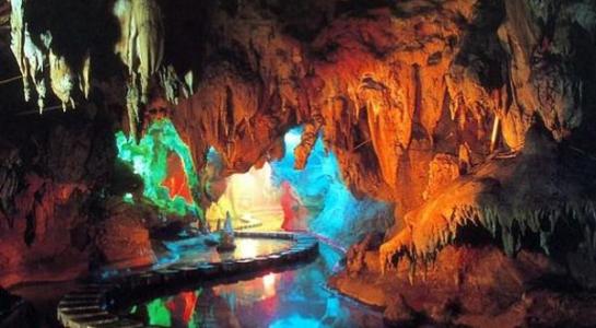 洞中景觀奇異絕頂。石山、石田、石幔、石瀑、石橋、石柱、石旗等景觀,天然自成,比比皆是,恰如天然石景公園。那些諸如“唐僧西行、神象觀潭、觀音坐蓮、王母瑤池、白龍游海、美女照鏡、淑女更衣、金蟾報曉、兄弟稱雄、浪子回頭、猴王探路”等意象景觀,活靈活現(xiàn),傳神逼真。版權所有山東聊城聊之旅國際旅行社有限公司,轉載必究!尤其那壯觀氣派的“龍宮”,宮中的定海神針,高達29米,比黃龍洞中的定海神針高出1米多,粗幾倍,需幾個人才能合抱。定海神針似雕花門柱,石花燦爛,玉樹瓊花,其景其勢,國內(nèi)一絕。洞府中還展示了大自然“三界”?!岸锤参锝纭?,洞中遍生石樹、石筍、石藤、石草、石花、石葡萄,種類繁多,可謂植物標本園?!岸锤畡游锝纭?,有意象中的諸如天上飛的、水里游的、陸地跑的,千姿百態(tài),栩栩如生。這里還曾是古生命的搖籃,洞中有古河床,殘存著45萬年前的貝殼;還有5萬年前的動物腿骨化石,考古專家鑒定那是鹿和豬的骨頭?!岸锤巧锝纭?,無所不有,奇景萬千。石梯田、石壩列列在目。那石幔從“天棚”順著高高的洞壁飄然垂下,高達13米,恢宏大度,勢如瀑布。它更象劇場幕布,任由大自然的鬼斧神工或拉開或閉合。專家們認定,這石幔是中國的唯一,也是亞洲的唯一。還有那乳石音樂更是一絕。形狀各異的鐘乳石,有的成片從洞頂一瀉而下,似瀑布從天而降,洶涌澎湃;有的懸掛在洞壁,象成熟的瓜果;有的從頂棚垂掛,狀似葫蘆一字排開,長短不一卻錯落有致。在這些乳石集中的一個地方,人們用木棒輕輕地敲擊乳石,可以發(fā)出不同的音符,可以敲出悅耳動聽的音樂。要是高手,還可以敲出樂曲來。倘若詩圣杜甫聽此樂聲,定會將七絕《贈花卿》末句改成:“此曲只應洞中有,人間難得幾回聞。