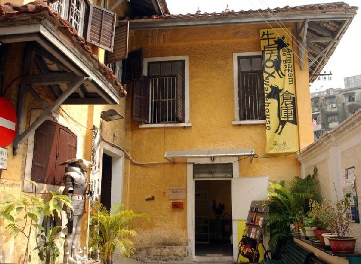 牛房倉庫原先是檢疫牛只的倉庫,現(xiàn)在是澳門藝術(shù)團體“婆仔屋藝術(shù)空間”的展覽地。牛房倉庫旁邊有間小巧的書店,淡淡的音樂像香熏般在房間里擴散。書店里面有個很像設(shè)計者辦公室的地點,凌亂、狹窄,但有品位。