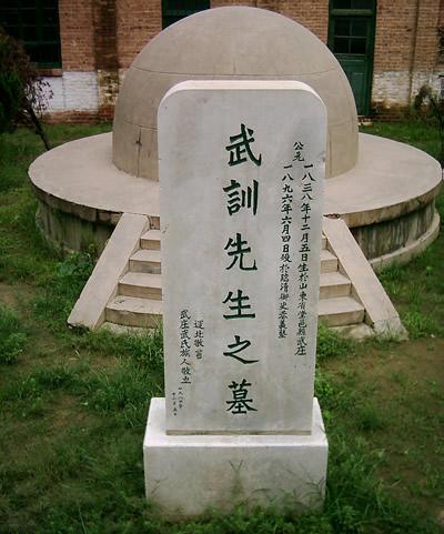 1896年6月4日(光緒22年4月23日巳時(shí)),武訓(xùn)先生在臨清御史巷義學(xué)房檐,側(cè)身而臥,聽著孩子的瑯瑯讀書聲,面露微笑,離開了人間,享年59歲。遵照遺囑,由其侄克信引薄柩葬于此地,當(dāng)時(shí)為土丘。1937年,由何思源監(jiān)工,重修武墓,改為水泥丘。1966年9月,“造反派”扒墳掘墓,碎尸粉骨。據(jù)目擊者回憶武訓(xùn)尸骨較長(zhǎng),沒有任何陪葬平,頭骨上有一縷頭發(fā)。1989年4月,武訓(xùn)紀(jì)念館籌建小組按原方位與形狀重新修建,墓碑由徐云北題。