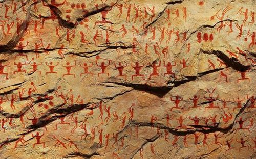 令人稱奇的是,經(jīng)歷了如此久遠年代的風(fēng)吹日曬雨淋,壁畫的顏色仍然非常鮮艷,不知先民們是用什么顏料作畫的?在如斧劈刀削般、高聳險峻的崖壁上,這些圖像又是怎么畫上去的?“是誰揮得筆如椽,乾坤寫此大詩篇”;“鬼斧神工輸技巧,風(fēng)吹雨打猶鮮妍”——這是古人對花山巖畫的感嘆,也提出了讓人百思不得其解的兩個疑問。