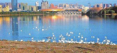 天鵝湖國(guó)家城市濕地公園,位于三門峽市東西城區(qū)之間的生態(tài)區(qū)內(nèi),現(xiàn)有面積8850畝,其中陸地6150畝,水面、灘涂2700畝,核心景區(qū)包括雙龍湖白天鵝觀賞區(qū)、陜州古城和沿黃生態(tài)林帶三部分,是一處融生態(tài)、文化和人文地理于一體的自然山水景區(qū)。