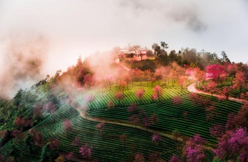 無量山櫻花谷,位于云南大理州南澗縣無量鎮(zhèn)德安村委會境內,在云南大理華慶茶業(yè)有限公司的茶莊園內,與靈寶山國家森林公園相鄰,距離縣城51公里。北緯24°45' 50" 東經 100°30' 32" ,海拔2175米。
