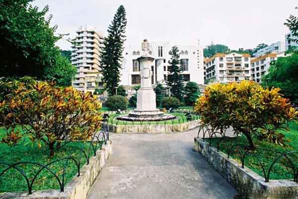 得勝花園建于十九世紀(jì)末葉,位于士多紐拜斯大馬路與得勝馬路之間,坐落于昔日“花士古打監(jiān)麻新路”的地段上。1898年,當(dāng)局為紀(jì)念伽馬率領(lǐng)的艦隊抵達(dá)印度四百周年,遂修筑了這條林蔭大道。大道全長500米,闊65米,兩旁遍植假菩提榕,樹影婆娑,充滿田園色彩。至今部分古樹仍屹立該處,見證百年滄桑。時移世易,今天林蔭大道已不復(fù)存在,在原址先后建成了學(xué)校、酒店和治安警察廳等建筑物。而這兩座花園便是這條“公共人行道”現(xiàn)存的建筑。