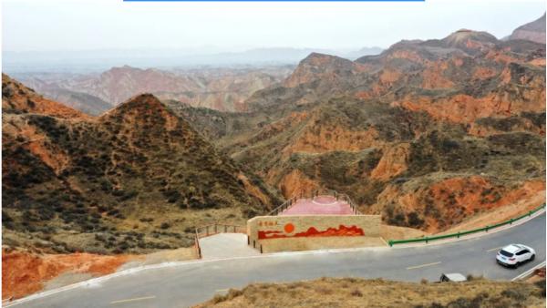 絲路霞光觀景平臺絲路霞光觀景平臺海拔1861米,這里層理交錯、色彩斑斕,連綿的山峰呈現(xiàn)出紅、黃、橙、綠、褐、白、灰等多種色彩,每當朝陽夕落,天邊絢爛的晚霞給群山披上五彩霓裳,呈現(xiàn)出“一輪紅日天邊掛,滿眼霞光照碧峰”的景色。 這里是景區(qū)內(nèi)最佳拍攝日落的地方,故以絲路霞光命名。