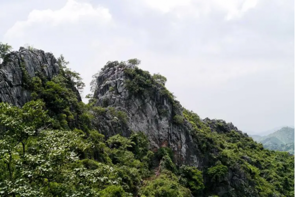 六峰山位于廣西靈山縣城西,由龍頭、鳳尾、鶴立、龜背、寶障、沖霄六個主要山峰構(gòu)成。山上古木參天,奇巖曲徑,怪石嵯峨。有古廟、古坊和碑刻多處。山中巖洞大小共有60多個。六峰山風(fēng)景區(qū)位于靈山縣城之內(nèi),共有包括六峰山及其一脈承的花石山、鳳凰山、翠壁峰,以及六峰公園、環(huán)秀公園、環(huán)秀橋等。六峰山海拔242米,相對高度182米,由于四周地勢平坦,故有拔地摩空之勢。整座石山由龍頭、鳳尾、鶴立、龜背、保障、沖霄六個峰組成,諸峰峻急,儀態(tài)萬千。山上古木參天,怪石嶙峋,奇巖迭出,曲徑通幽。有“石關(guān)”、牌坊、廟宇、石刻、碑林等古跡多處,大小巖洞64個。明朝時曾以“石六錦屏”“龜峰旭日”之名分別入選“靈山八景”和“靈山十景”,而今又以“六峰綴秀”入選為欽州八景之一。