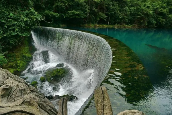 犀牛潭是九龍河大瀑布下面的最后一個(gè)潭,從這個(gè)潭開(kāi)始,就是站在大瀑布上可以一收眼底的一目十瀑。從以堵勒村及鴨子龍?zhí)哆^(guò)河對(duì)岸,就從潭上邊河床上的蛤蟆石走過(guò)。這個(gè)潭也不大,但就是怪,有時(shí)從上邊流下來(lái)的水是清的,可再?gòu)奶独锪鞒鰜?lái),就變成了渾的。老輩人說(shuō):“那是正好碰上犀牛翻身哩!”