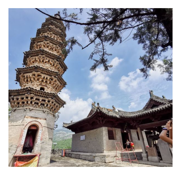 青龍寶塔:七層密檐式磚塔,高 17 米,塔身逐層收縮,輪廓挺拔秀麗,每層懸掛風鈴。