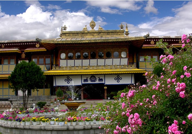 1922年,十三世達賴對羅布林卡再興土木,在園林西側建金色頗章宮、格桑德吉宮、其美曲吉宮,在西南建金色林卡,并種植大量花草樹木。