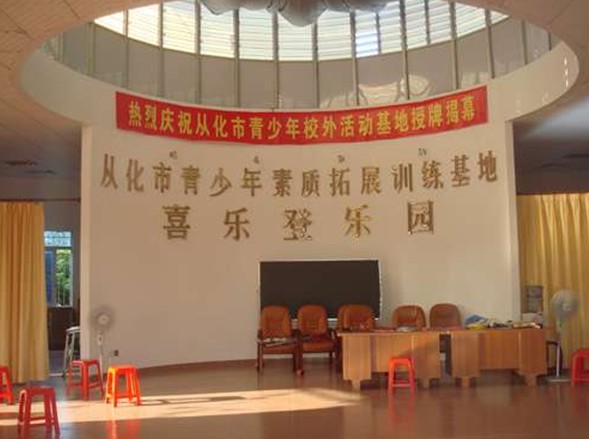 從化市喜樂(lè)登拓展訓(xùn)練中心(青少年素質(zhì)拓展訓(xùn)練基地)座落在從化城郊紅旗村(距廣州約70公里,離從化市中心約15分鐘車(chē)程),占地350多畝?;胤N有優(yōu)質(zhì)荔枝、龍眼、楊梅、黃皮等20多種果樹(shù),各種本地特色農(nóng)作物(紫心蕃薯、香芋、甜玉米等)以及上百種綠化植物,保持著濃郁的鄉(xiāng)村氣息。護(hù)城河邊、竹樓亭閣、果樹(shù)田園、風(fēng)光無(wú)限、是一個(gè)集科普教育、果園旅游,配合青少年素質(zhì)實(shí)踐教育為一體的實(shí)踐教育基地。
