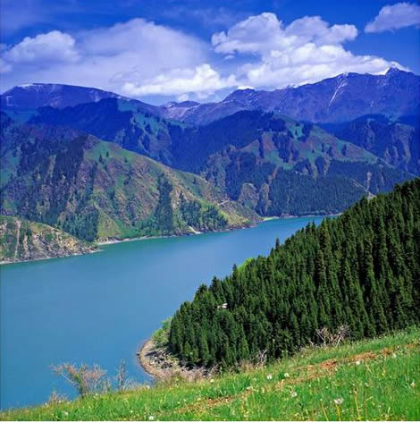 新疆天山天池,以其得天獨(dú)厚的地質(zhì)地貌,神奇特異的自然風(fēng)光,珍稀獨(dú)特的動(dòng)植物種,豐富光彩的人文景觀,珍貴殷實(shí)的文獻(xiàn)文物,美麗動(dòng)人的神話傳說,悠久深厚的道教傳承,濃郁多彩的民族風(fēng)情,熱情周到的旅游服務(wù),在全國著名的山水名勝中,獨(dú)領(lǐng)風(fēng)騷!是休閑避暑、觀光攬勝、探險(xiǎn)獵奇、科學(xué)考察、運(yùn)動(dòng)競技的理想境地。無數(shù)中外游客俯仰之間,為之傾倒,感慨之際,嘆為觀止!