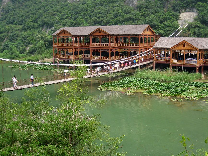 青天河之水天上來,這里三步一泉,五步一瀑,青山繞碧水,綠樹掩古寺,飛泉流瀑,如詩如畫。有世界獨一無二的天然長城及世界奇觀石雞下蛋;有中原獨一無二的高山峽谷濕地景色;有最大出水量每秒7立方米、洞徑2.18米的“華夏第一泉”三姑泉及由此泉水形成的長達7.5公 里的大泉湖。這里碧波蕩漾,嫵媚婉約,水隨山勢,百轉(zhuǎn)千回;野鴨隨水勢,掠過水面,水天一色;兩岸綠色掩映,獼猴嬉戲其中,湖內(nèi)行船蕩舟,舟移景異,船在畫中走,人在畫中游,如游漓江,似進三峽,置身其中,您將從生活壓力中解放出來,得到最暢快最松弛的休閑。進入西峽,兩岸青峰翠嶺,水面一平如鏡,楊柳臨溪傍水,荊林神韻通幽,古樸小舟伴著暮歸的老牛和牧童,一片田園牧歌式的風光呈現(xiàn)在眼前。而游程中,產(chǎn)生于7000萬年前至今唯一身上有文字記載的世界罕見天然大佛、距今1500年的北魏摩崖石刻、北魏官道等人文景觀,會使你在這靜謐的環(huán)境中返樸歸真,去細細地體味和追溯歷史的腳步。
