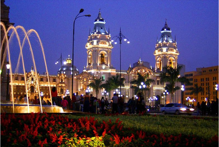 玻利瓦爾廣場是根據(jù)西班牙王室命令建造的西班牙式大廣場,其中的大教堂是在原西班牙教堂的舊址上興建的。大教堂氣勢宏偉,兩端的兩座鐘樓高高聳立,塔尖直指蒼穹。廣場中央,一座西蒙•玻利瓦爾騎著駿馬的高大雕像矗立在約3米高的碑身上,雄偉莊嚴(yán);四周裝有帶彩燈的噴泉,每到夜晚,彩燈大開,泉水四射,流光閃爍,五彩繽紛。