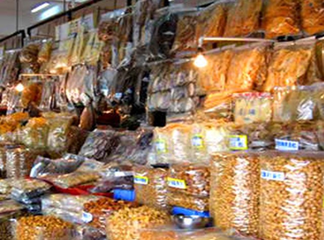 灣仔海味市場(chǎng)位于灣仔碼頭對(duì)面,這里地方十分整潔,鋪位排得十分整齊,數(shù)目不下百個(gè),主要經(jīng)營(yíng)海味干貨,如魚(yú)翅、鮑魚(yú)、海參、咸魚(yú)、瑤柱、魷魚(yú)等。大部分干貨是從外地進(jìn)口,除了海味干貨以外還有一些小飾物如珍珠項(xiàng)鏈、奇形貝殼、特色耳環(huán)等。 由于這個(gè)市場(chǎng)具有濃厚的地方特色,且與澳門(mén)隔河遙望,所以每天都吸引到大批游客探訪拍照留念。