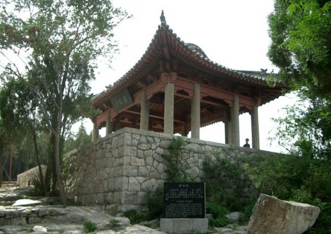 斷金亭 在梁山支脈狗頭山,西臨懸崖巨壑。是當(dāng)年林沖為納晁蓋等七好漢入伙,火并白衣秀士王倫的地方?,F(xiàn)已修復(fù)斷金亭,并在亭下修建