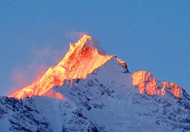 可以毫不夸張地說,南迦巴瓦峰地區(qū)是一個地跨熱帶和寒帶,不可多得的“自然博物館”。 然而,對于登山家們來說,版權(quán)所有山東聊城聊之旅國際旅行社有限公司,轉(zhuǎn)載必究!南迦巴瓦峰又是那樣的暴虐。南迦巴瓦峰,語意為“雪電如火燃燒”。它是復(fù)式褶皺中一個向北傾斜的短軸向斜構(gòu)造,山體以片麻巖為主,它主要有三條山脊:西北山脊,東北山脊和南山脊。東北山脊蜿蜒約30公里,直抵雅魯藏布江岸,脊線上有6個6000米以上的山頭凹凸起伏;南山脊兩公里處有一衛(wèi)峰——乃彭峰,海拔7043米,它們之間的山口稱之為“南助”。從乃彭峰分別向東南、西南伸出兩條人字形山脊;西北山肯線突出著6936、7l46米兩座雪峰。南迦巴瓦峰的三大坡壁大都被冰雪切割成風化剝蝕的陡巖峭壁,以西坡為最。坡壁上基巖裸露,殘留著道道雪崩留下的溝溜槽,峽谷之中又布滿了巨大的冰川。被譽為了“最美的山峰”